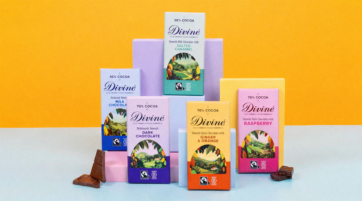 Divine Chocolate är inte bara oerhört gott utan gör även gott. Chokladen är fri från palmolja, FairTrade och skapad enbart med naturliga ingredienser.